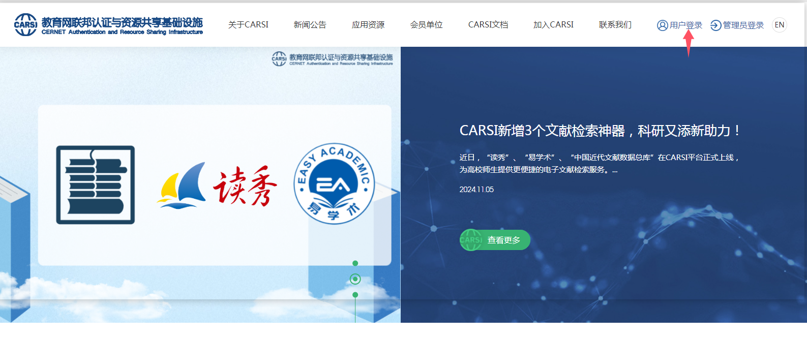 CARSI登录地址如下:https://www.carsi.edu.cn